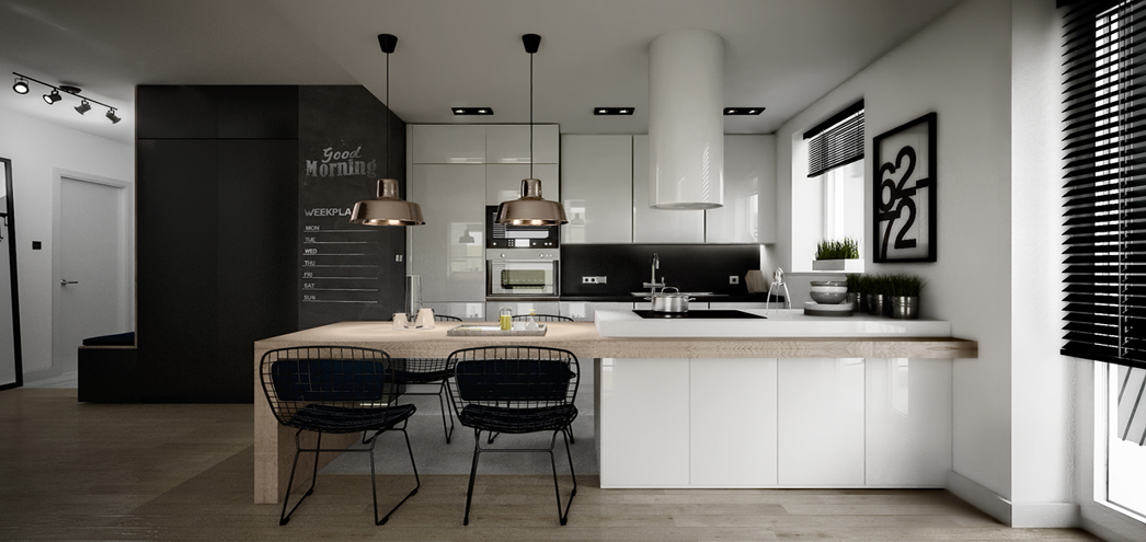While traditional kitchen styles tend to emphasize material and color palettes, modernist designers are exploring the world of unconventional geometric design and creative framing. The kitchens in this post range from futurist styles based on sharp asymmetric polygons, all the way to otherwise classic compositions that break the mold by emphasizing innovative uses of proportion and shape – bold and subtle in turn. Many of these spaces sit on the high end of the luxury spectrum but others employ simple tricks that any handy DIY enthusiast can use.